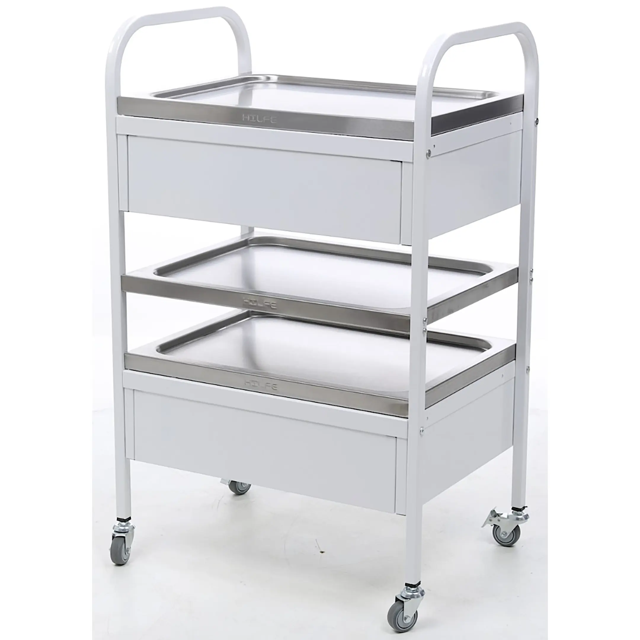 • имеет 4 колеса из не маркой серой резины D= 50 мм, два из которых снабжены тормозом;