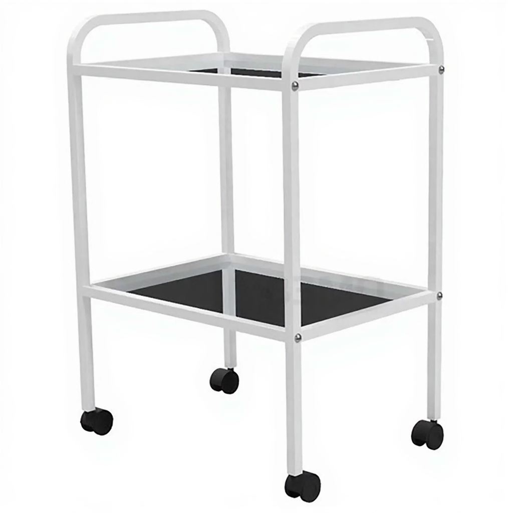 Стол медицинский инструментальный СМИ-02 (полки стекло, колёса серая резина) — это легкий двухъярусный мобильный столик, предназначенный для размещения инструмента, лекарственных препаратов и приборов в медицинских учреждениях и лабораториях. Модель имеет каркас из профильной стальной трубы и две полки из стекла.