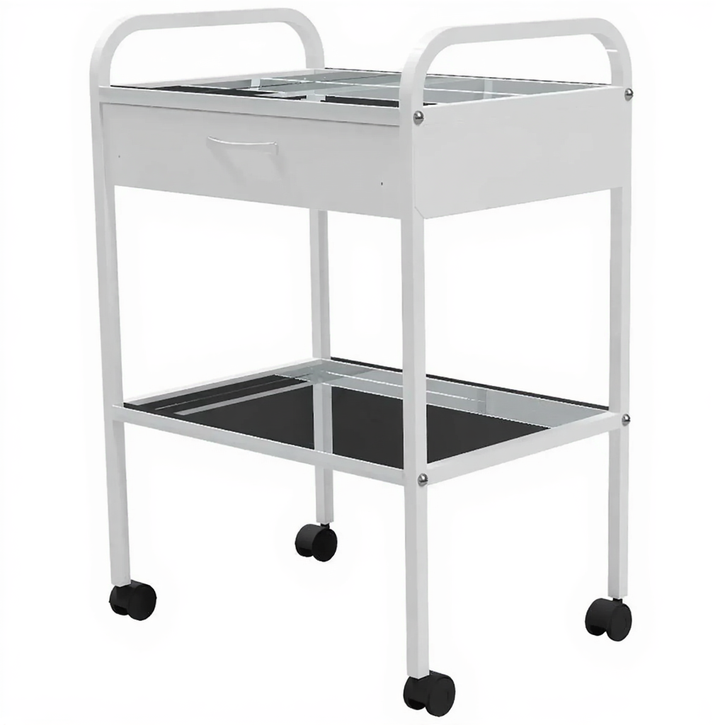 Столик медицинский инструментальный СМИ-02-01 (полки нерж. сталь, колёса пластик) — это компактный мобильный столик, предназначенный для размещения инструмента, лекарственных препаратов и приборов в медицинских учреждениях и лабораториях. Модель имеет каркас из профильной стальной трубы, одну полку из нержавеющей стали и один выдвижной ящик.