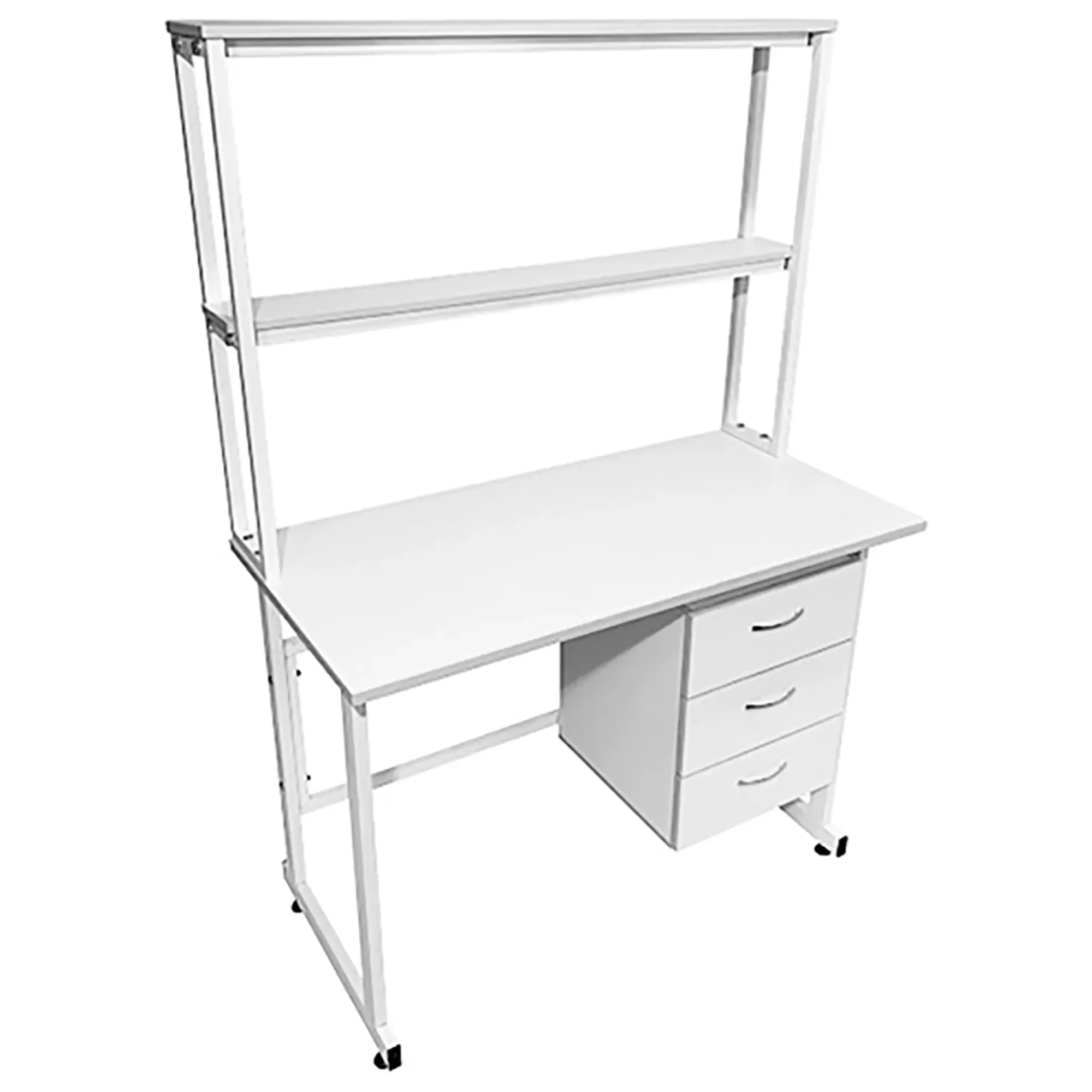 Стол лабораторный с надстройкой СЛн 16.004 (белый) — это оптимальное решение для организации рабочего места лаборанта, занимающегося проведением химических исследований в лабораториях и медицинских учреждениях. Модель оснащена подвесной тумбой с тремя выдвижными ящиками справа, надстройкой с двумя полками и металлическим защитным экраном. Каркас выполнен из стального профиля, столешница из ЛДСП толщиной 22 мм.