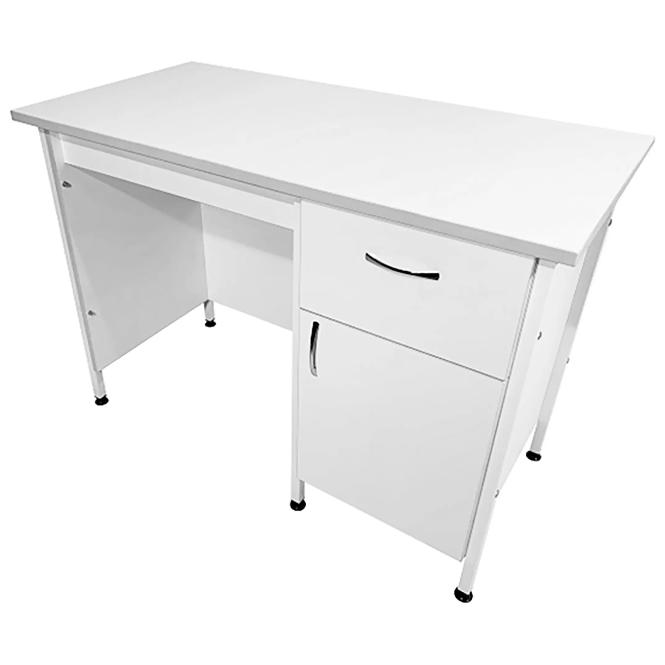 Стол лабораторный СЛ 12.013 (белый) является идеальным решением для организации рабочего места сотрудников в лабораториях и медицинских учреждениях. Модель оснащена тумбой с выдвижным ящиком, распашной дверкой и полкой внутри. Каркас выполнен из стального профиля, столешница из ЛДСП толщиной 22 мм.