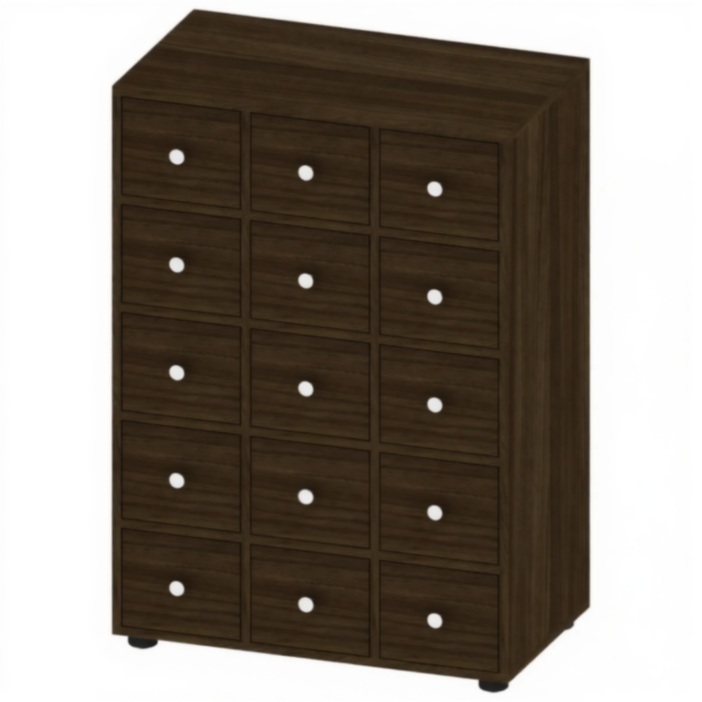 - Специализированное хранение — 15 выдвижных ящиков для упорядоченного хранения формуляров и карточек.