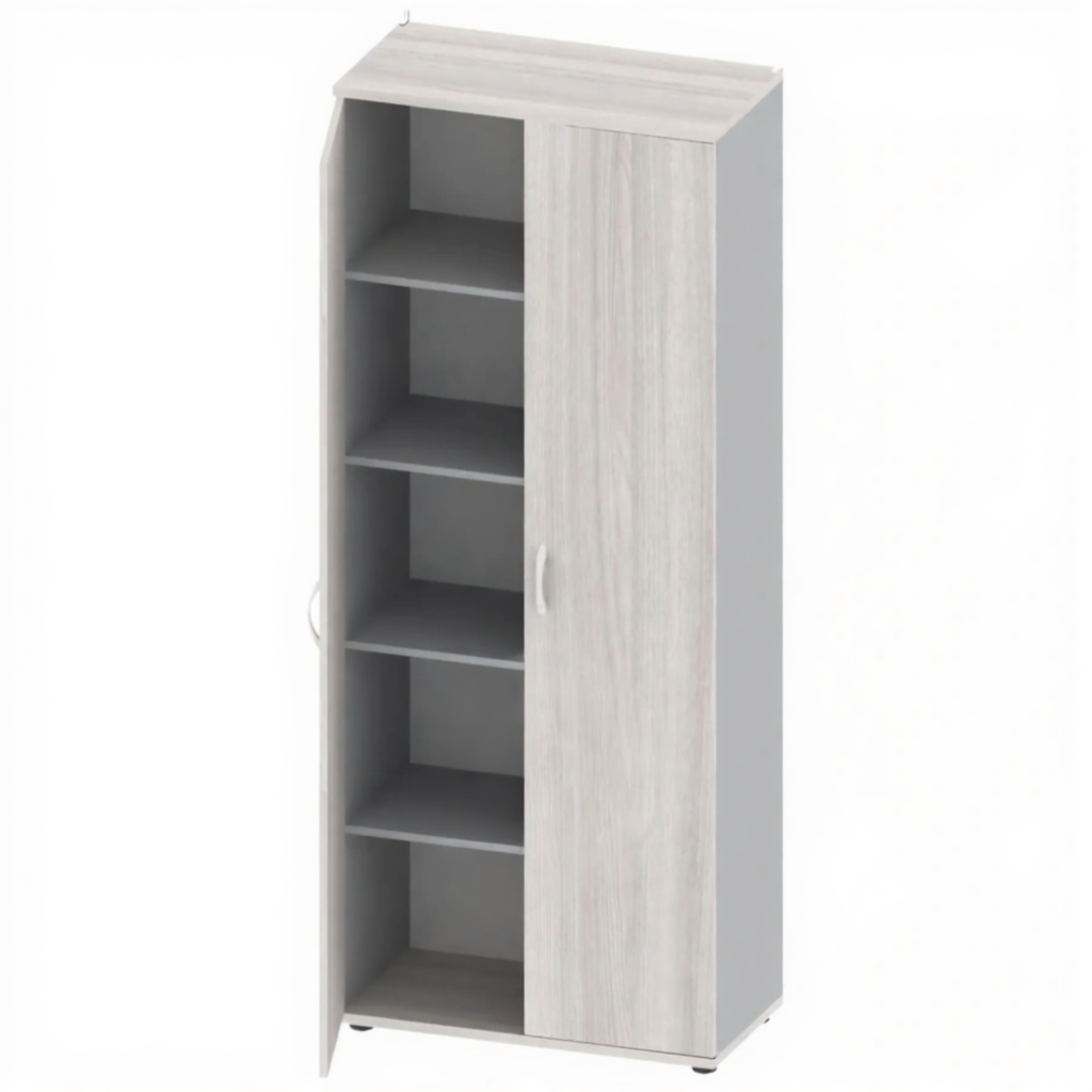 Шкаф для документов канцелярский, 2 двери, 800 мм, ШК-ДУ-4 — это функциональное и вместительное решение для хранения документов, папок и канцелярских принадлежностей в образовательных, офисных и административных учреждениях. Модель имеет комбинированную конструкцию: верхняя открытая часть с 4 полками и нижняя закрытая часть с двумя дверцами. Изготовлен из качественной ЛДСП: топ и дно из ЛДСП толщиной 22 мм, остальные детали из ЛДСП 16 мм.