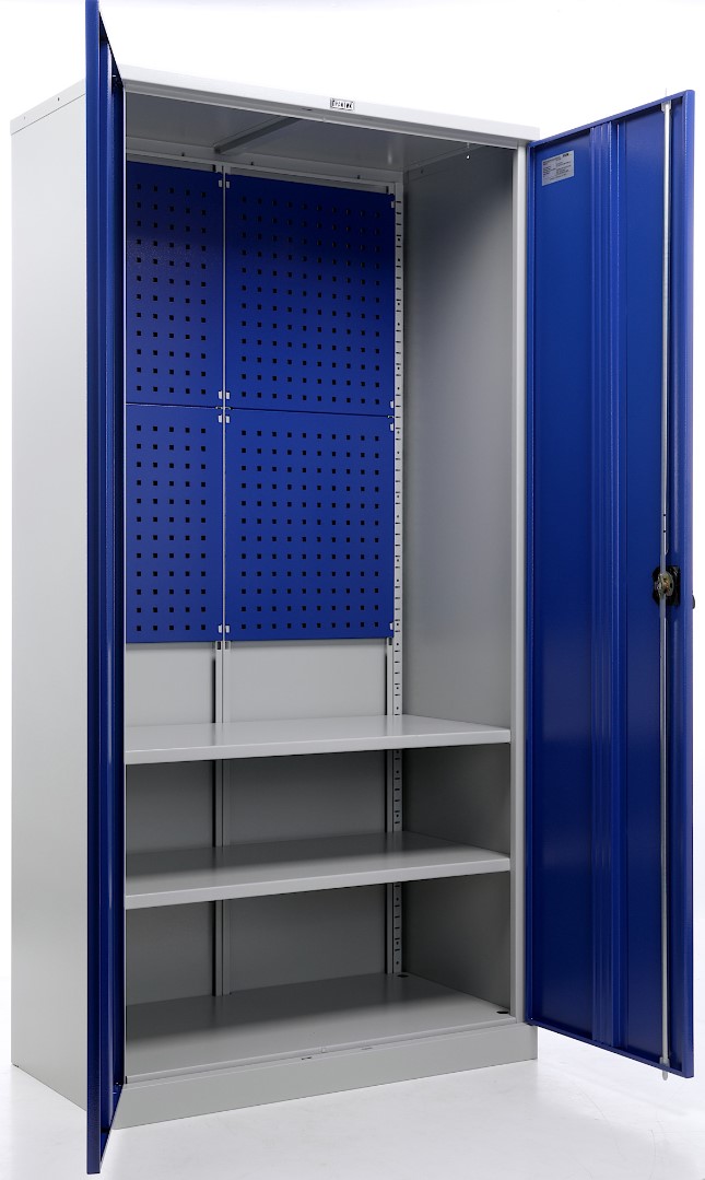 - Максимальная организация и наглядность — модель оборудована обширными перфорированными панелями (система «перфо») на дверцах и, как правило, на задней стенке. Это позволяет удобно, компактно и наглядно разместить огромное количество инструмента на крючках и держателях, обеспечивая мгновенный визуальный контроль его наличия и комплектности.