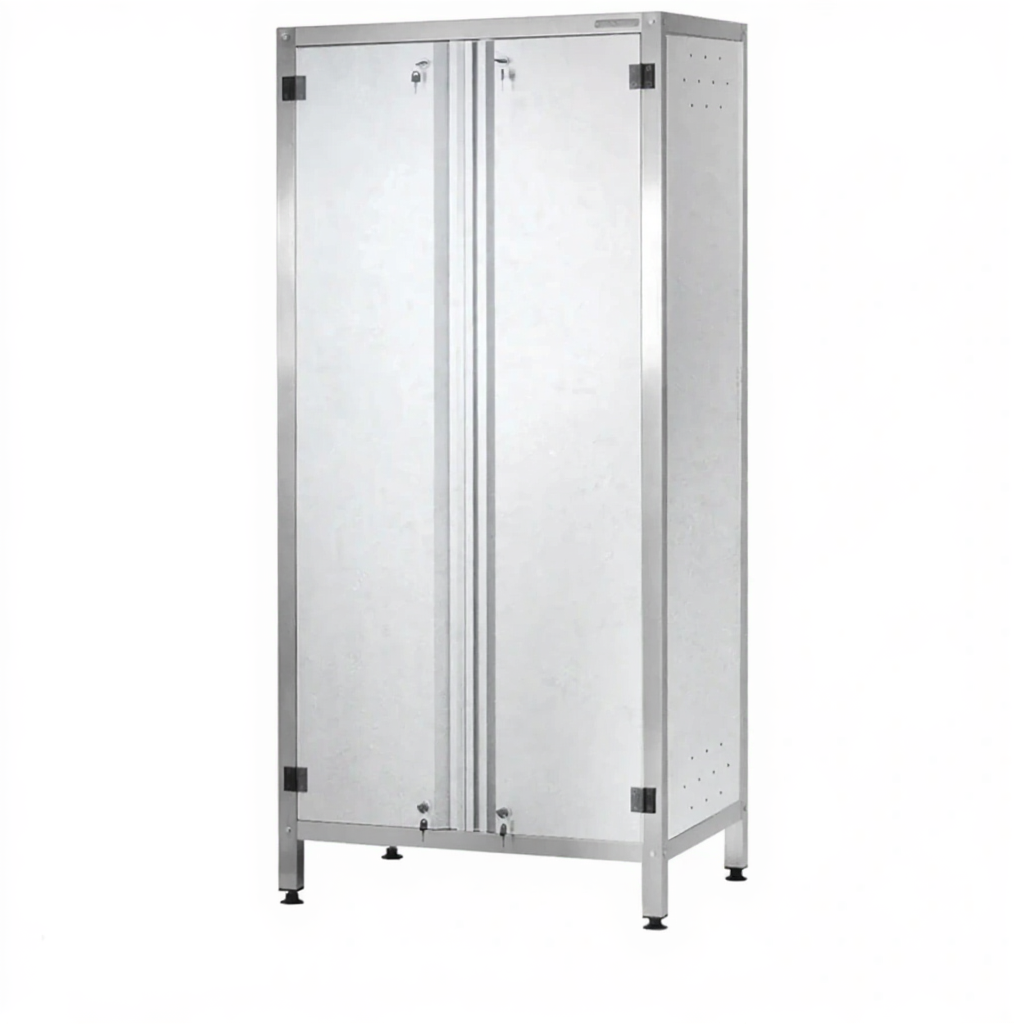 - Прочность и устойчивость к нагрузкам — изготовленный из качественной стали с износостойким порошковым покрытием «Profi Ral», шкаф выдерживает значительные весовые нагрузки, устойчив к механическим повреждениям, влаге и частой санитарной обработке. Конструкция гарантирует долгий срок службы.