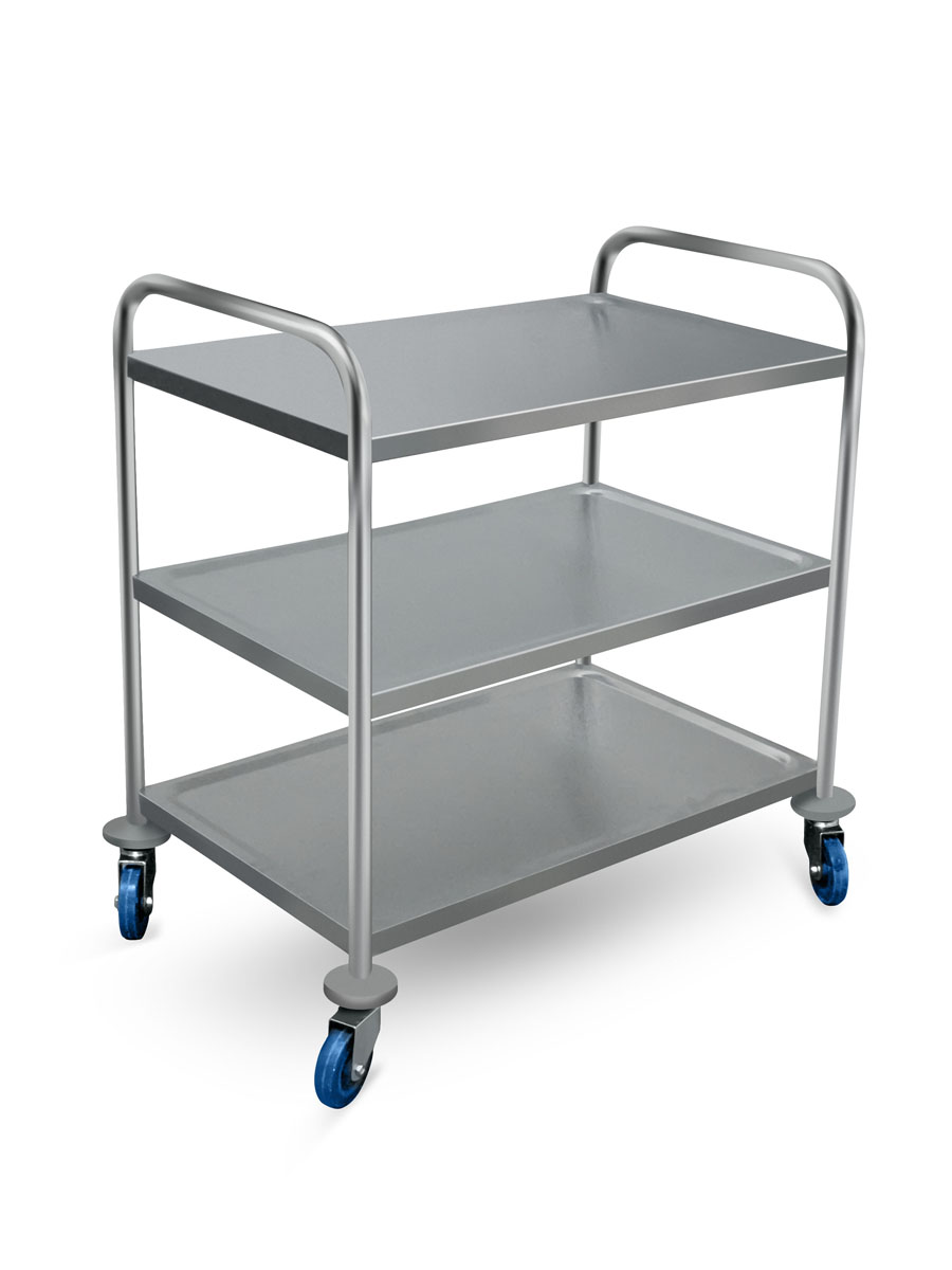 Сервировочная тележка [RTR-3М, TR-М3] оснащена тремя транспортными уровнями. Это вместительное нейтральное оборудование подходит для ресторанов, кафе, гостиниц, отелей и предприятий торговли.