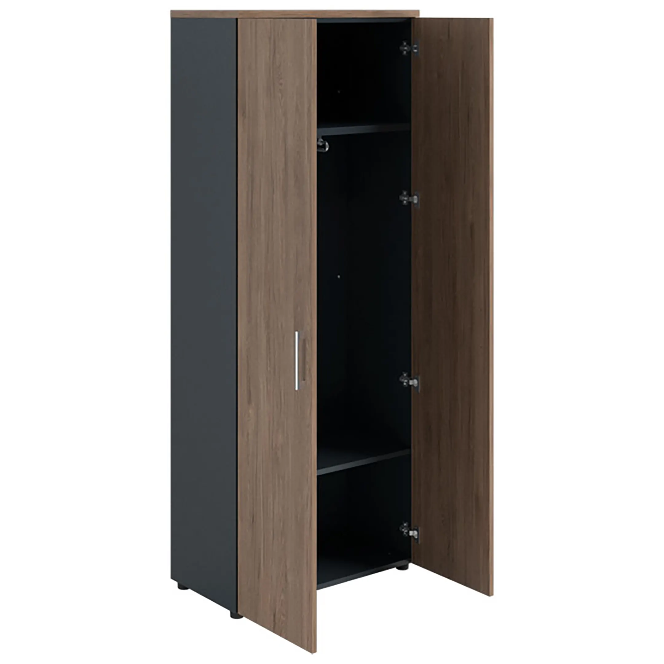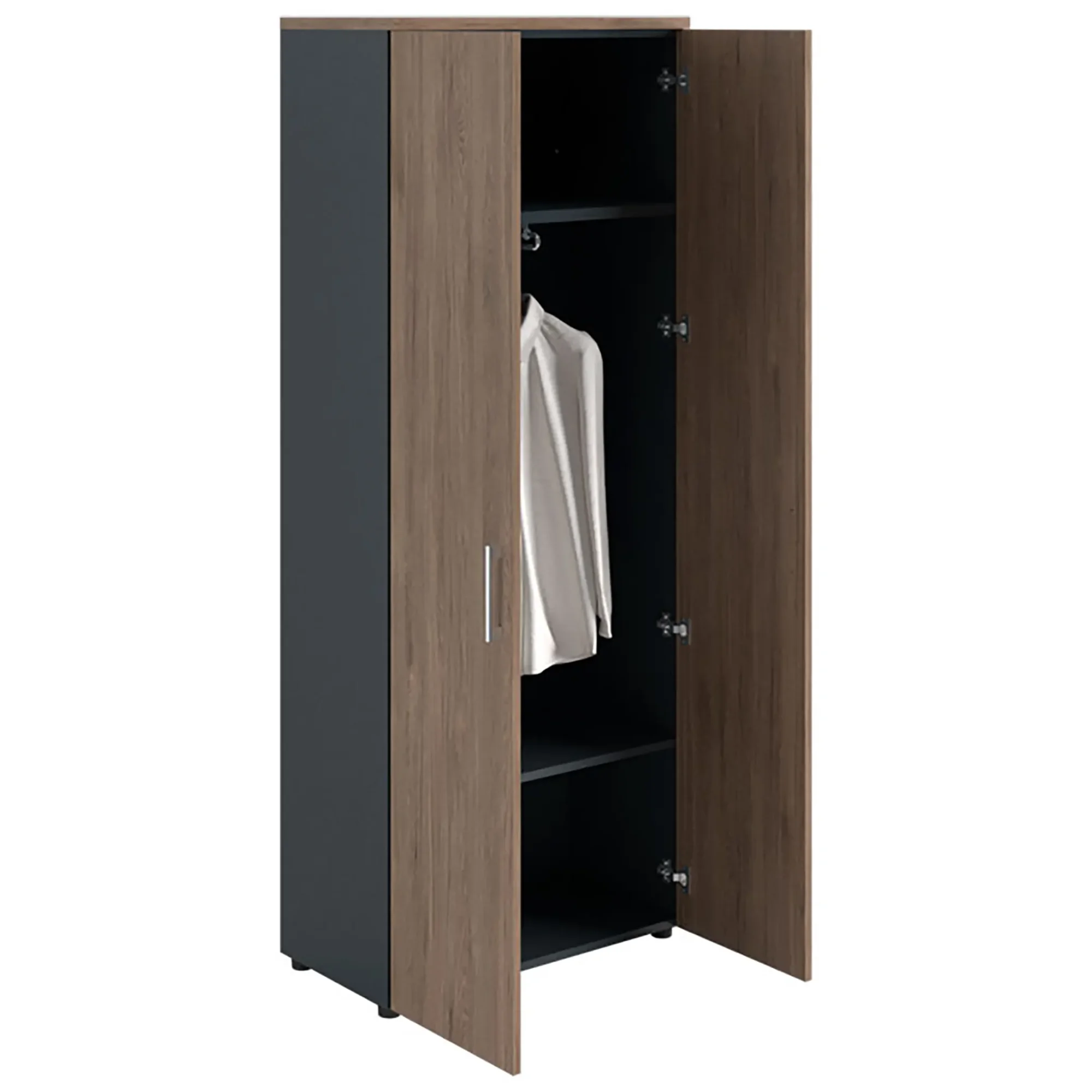 Шкаф NW 2080L гардеробный закрытый темный орех/антрацит предназначен для хранения.