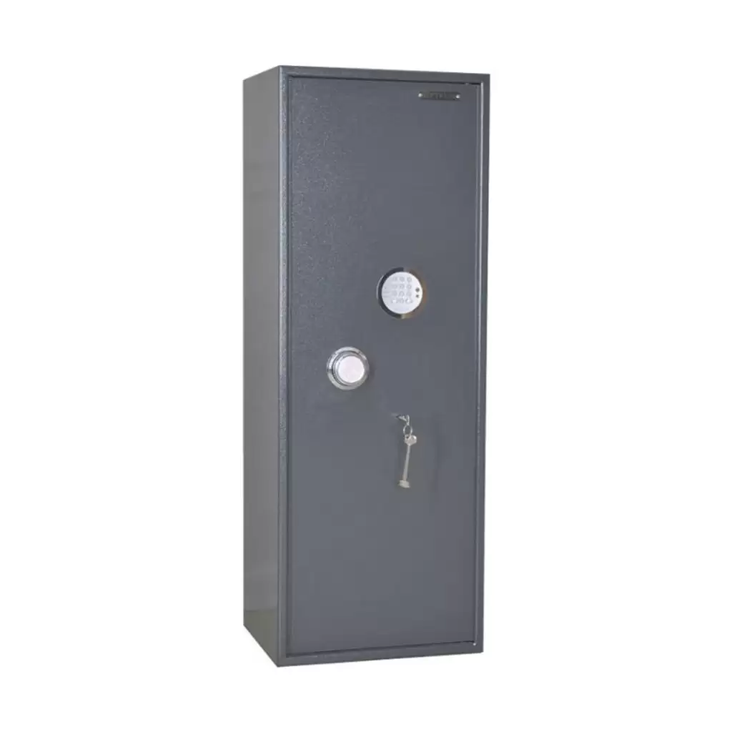 - Усовершенствованная электронная система защиты — шкаф оснащен современной электронной системой запирания, обеспечивающей высокий уровень безопасности хранения. Контроль доступа с помощью цифрового кода исключает риск утери ключей и позволяет гибко управлять правами доступа для разных пользователей.