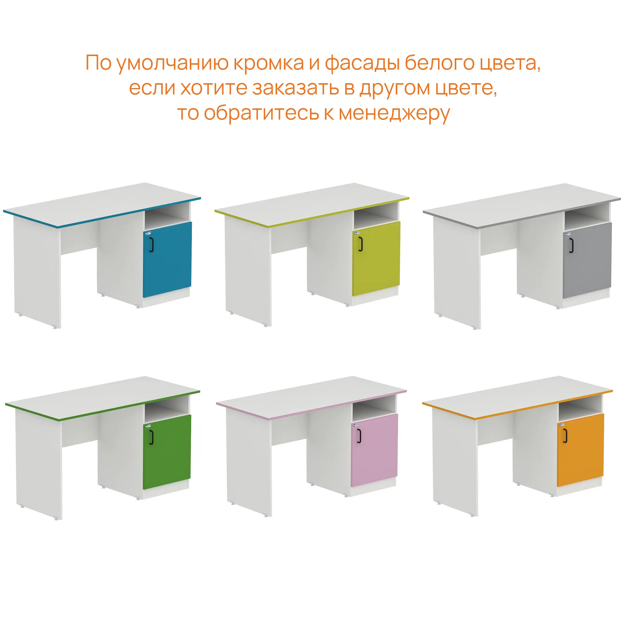 По умолчанию кромка и фасады в белом цвете, но возможно изготовление в других цветах, варианты представлены на последнем фото в карточке товара.