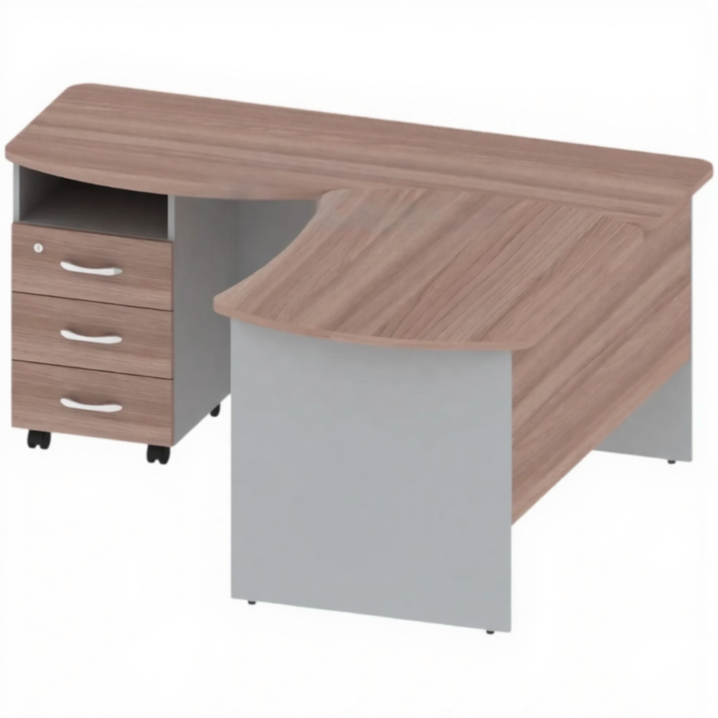 Стол угловой с тумбой левосторонний ОФ-СТ-104-1 — это специализированное рабочее место с угловой конструкцией для организации комфортных рабочих зон для левшей в офисах, административных учреждениях и учебных заведениях. Угловая форма стола позволяет оптимально использовать пространство помещения, предоставляя просторную рабочую поверхность. Левосторонняя компоновка с тумбой создает удобные условия для работы левшей, обеспечивая эргономичное расположение всех необходимых элементов рабочего места и легкий доступ к системам хранения.