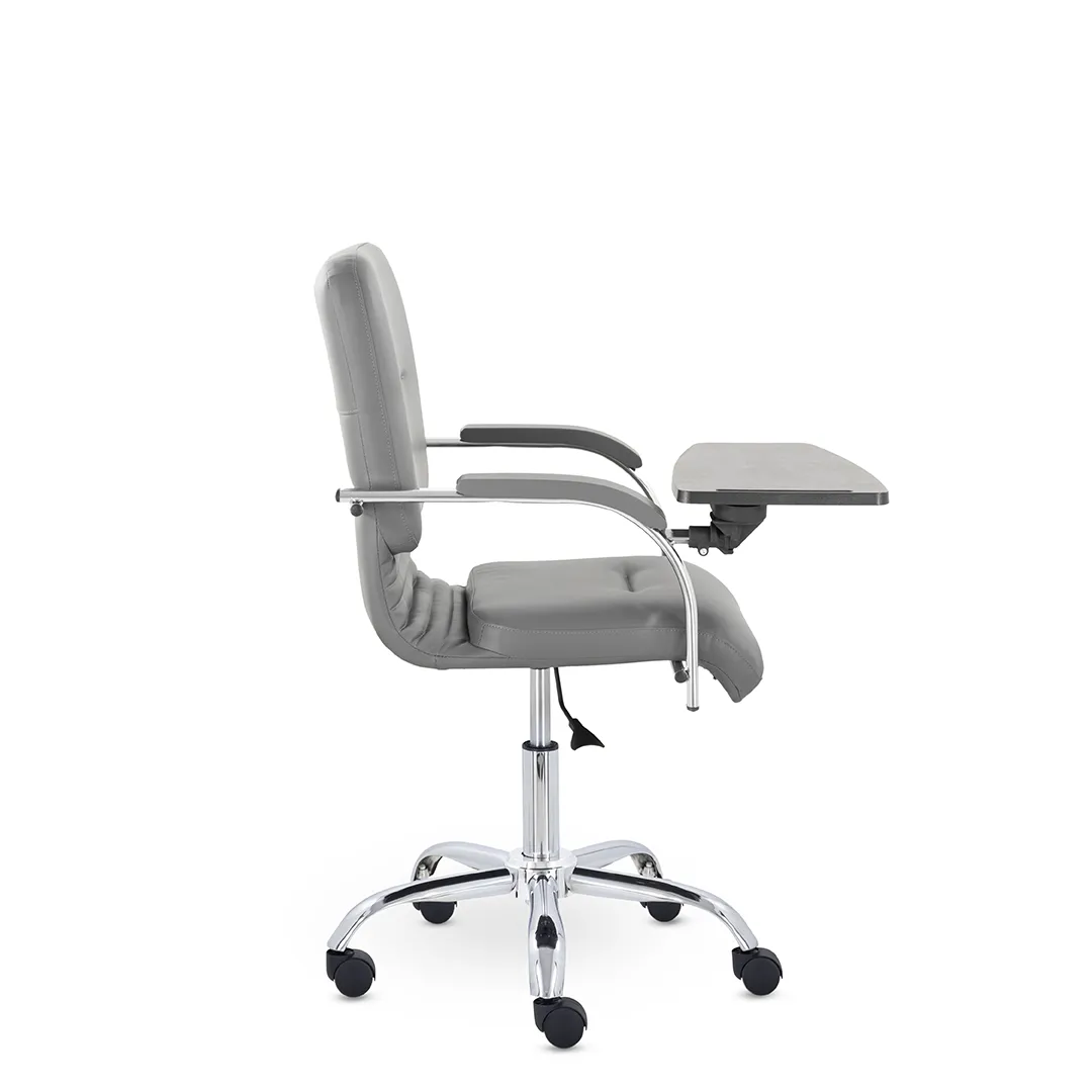 - Встроенный столик — удобная откидывающаяся поверхность для письма, ноутбука или планшета, что делает кресло особенно функциональным для конференций, лекций и рабочих зон.