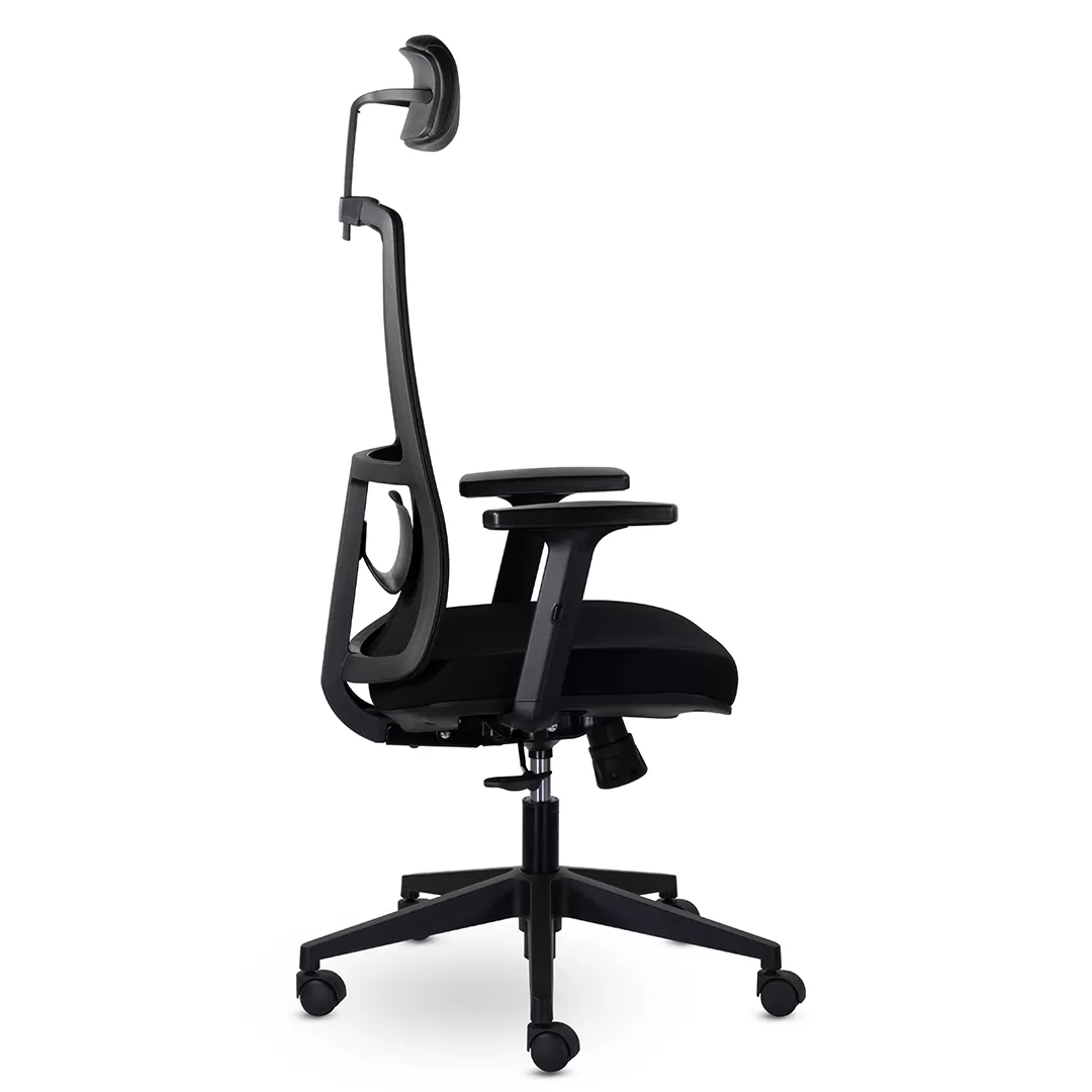 - Эргономичная конструкция с подголовником — высокая спинка и встроенный подголовник обеспечивают правильную поддержку позвоночника и шейного отдела, снижая усталость при длительной работе за компьютером.