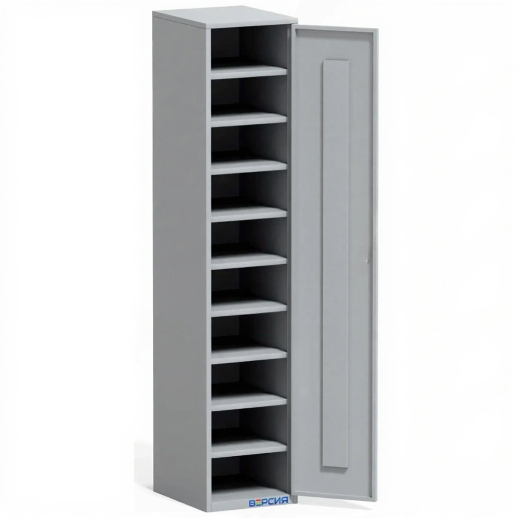 • 9 полок под сменную одежду (10 отделений). Шкаф можно использовать как для хранения уборочного инвентаря, так и для спецодежды: в шкафу можно хранить комплекты сменной одежды, а также личные вещи сотрудников и сумки.